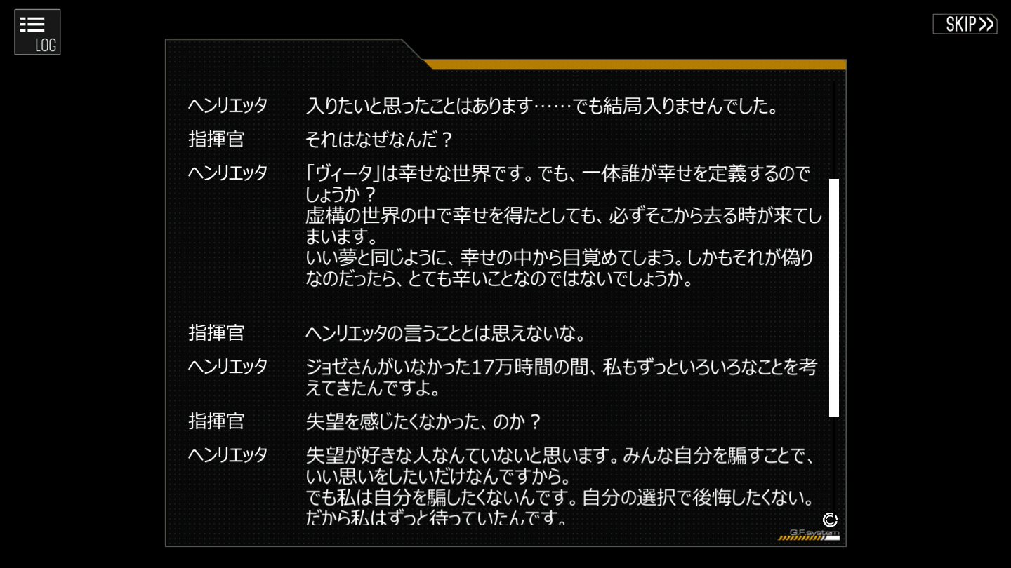 そしてこれ以前もヘンリエッタは新トリノのバッドエンドループを繰り返している為、ジョゼが死んでいる事は認識している、彼女としてはゴーストと会話している気分だったのだろうか