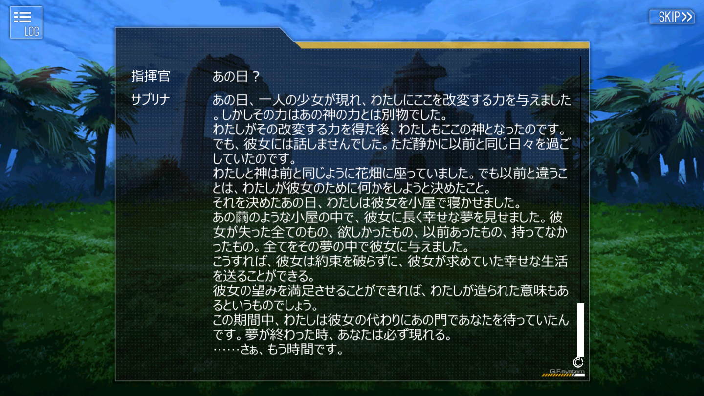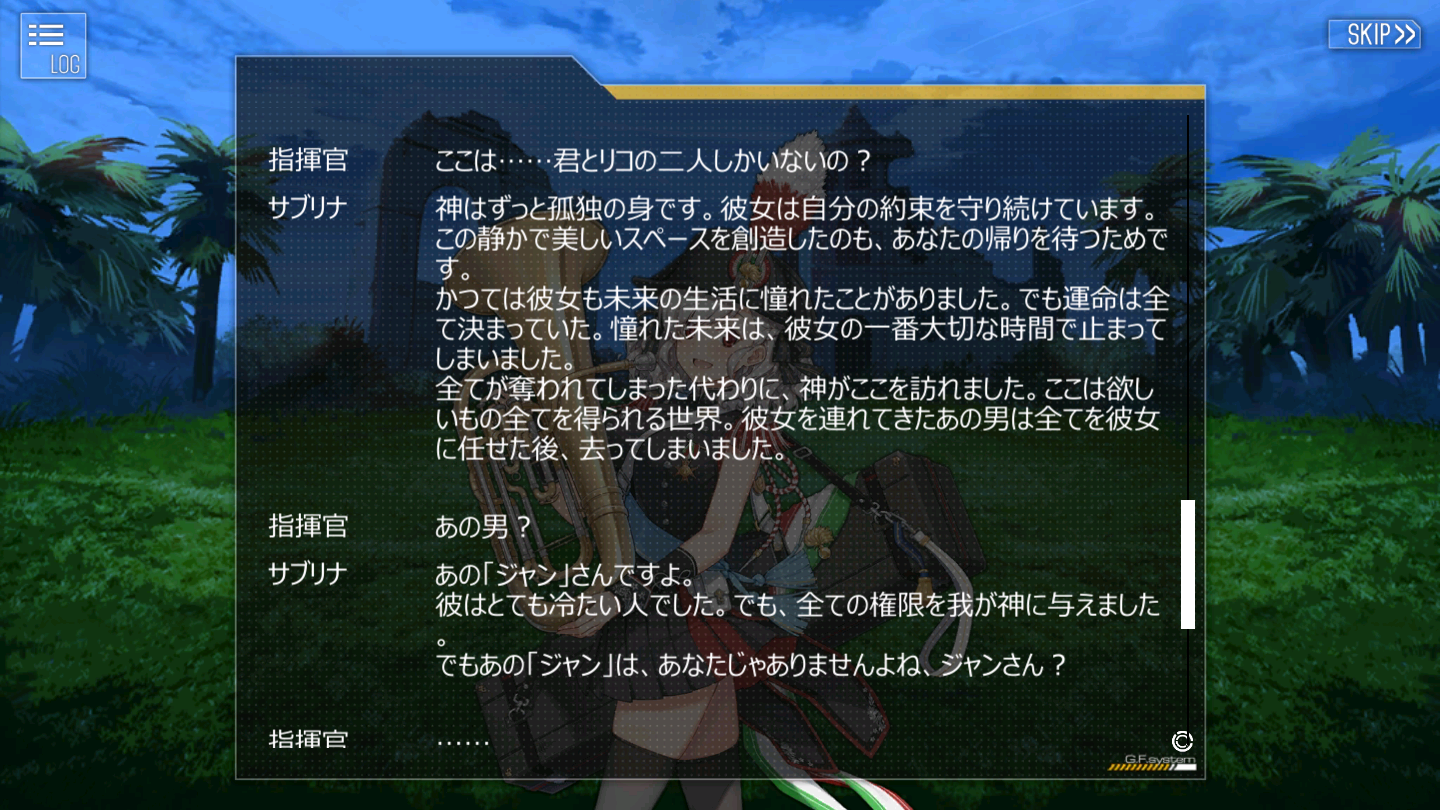 エピソード閲覧は外伝となり、20個くらい用意されてるらしい、人気キャラの外伝を戦闘があったりなかったり中々のボリュームだが、戦闘がある奴はレベル制限となるので結構厳しい、オールスターな敵が出がち