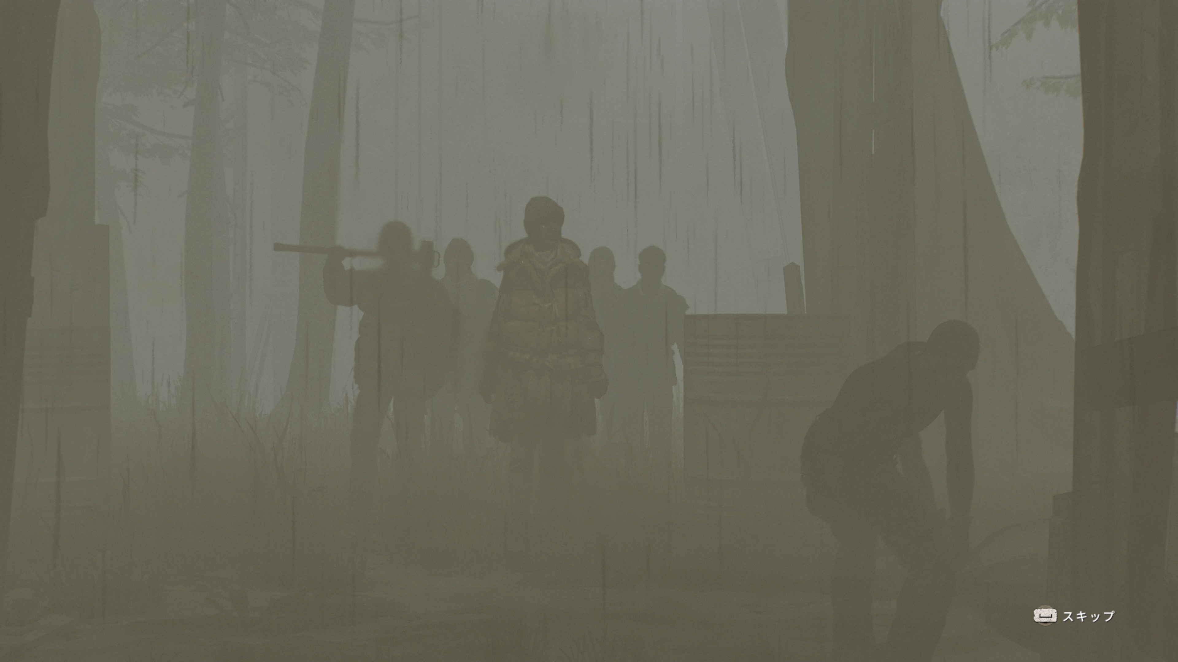 倉庫に入ったものの、窓があるせいか全然警戒が解けない、犬はそんなもんなのかもしれない、ドアからはみ出す頭を2匹ほど撃ち殺していると当然ゾンビが集まってくる、これは窓から見られて一生警戒が解けない、足もすぐには直らないのでその場でログアウトする羽目となった